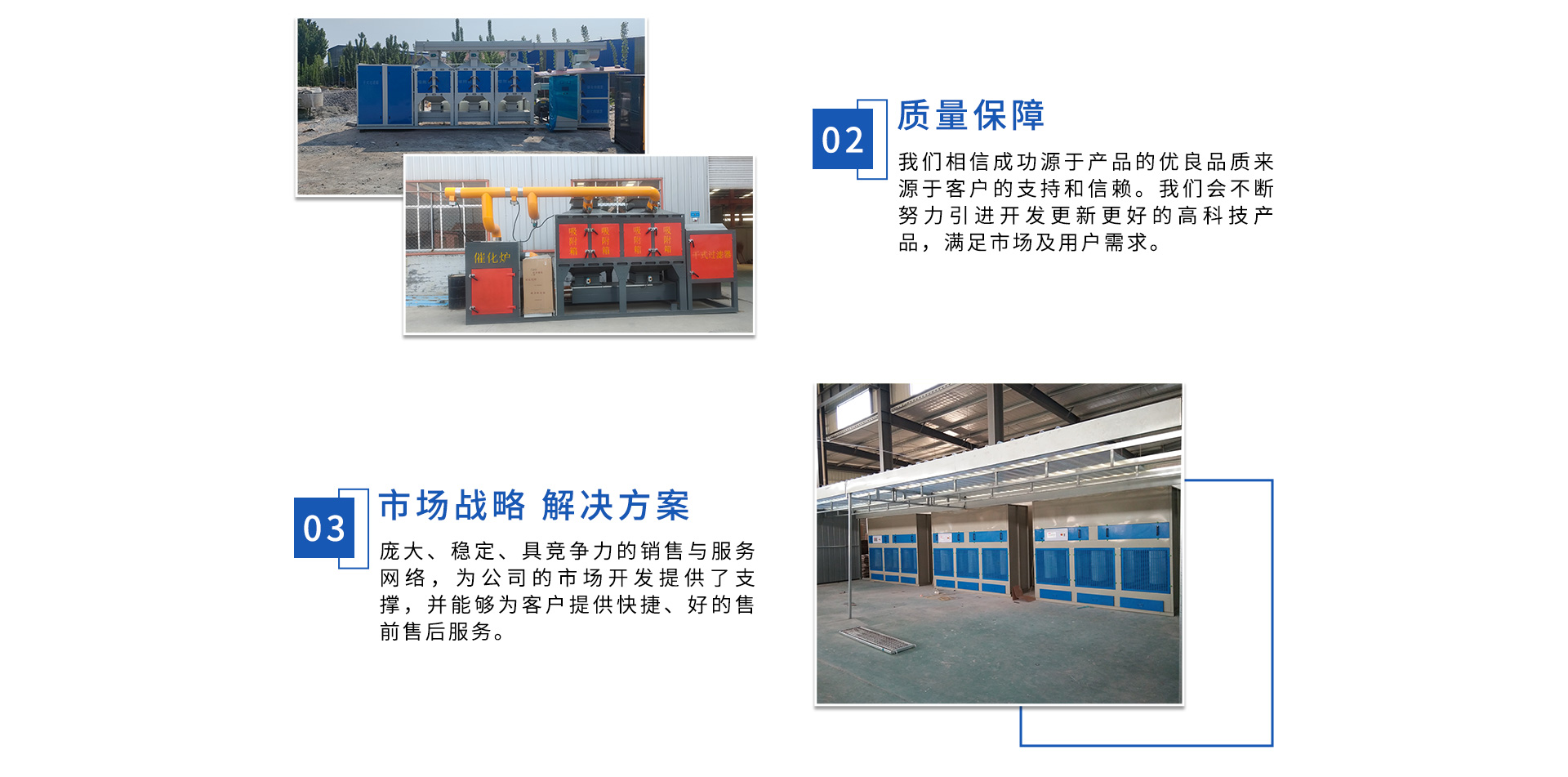 公司自成立以來(lái),始終專(zhuān)注于工業(yè)廢氣、污水、粉塵等環(huán)境污染的治理,先后研發(fā)出催化燃燒設(shè)備、光氧催化廢氣處理設(shè)備、低溫等離子廢氣處理設(shè)備、粉塵處理-體化設(shè)備等一系列環(huán)保設(shè)備,產(chǎn)品先后通過(guò)ISO901質(zhì)量管理體系認(rèn)證、中國(guó)環(huán)境保護(hù)產(chǎn)品認(rèn)證。